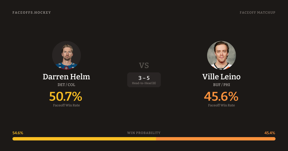Darren Helm vs Ville Leino — Faceoff Head-to-Head