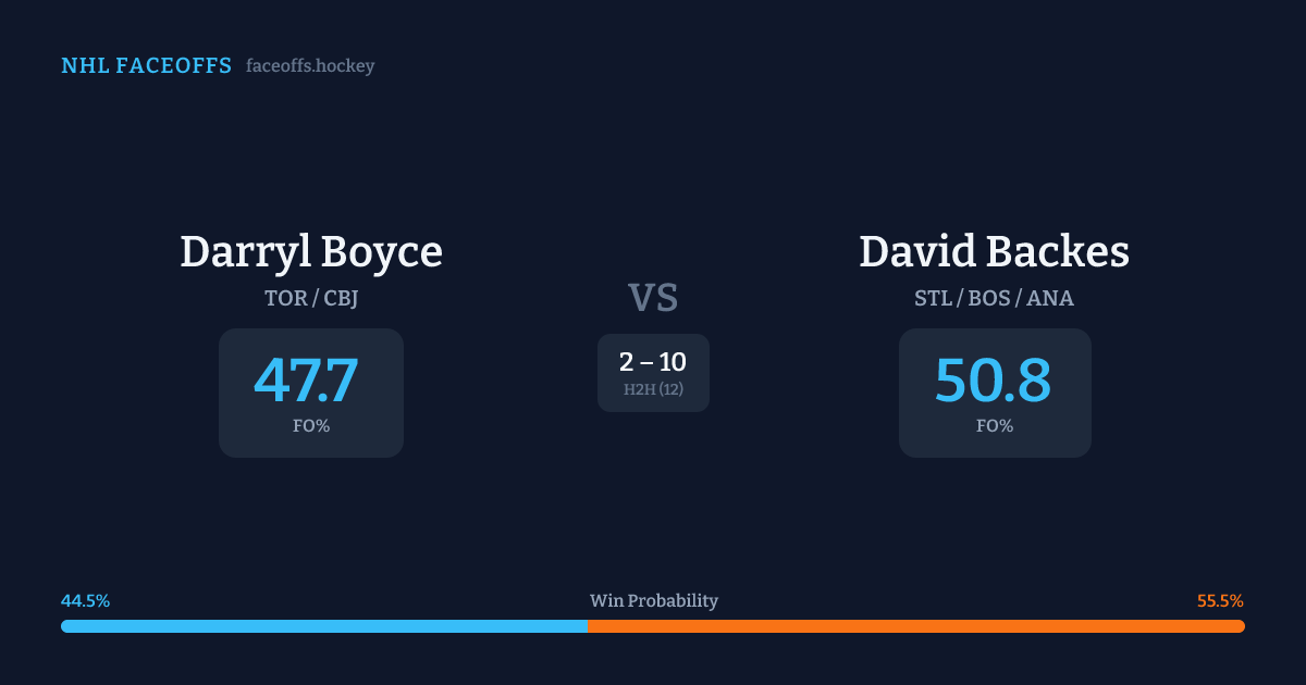 Darryl Boyce vs David Backes — Faceoff Head-to-Head