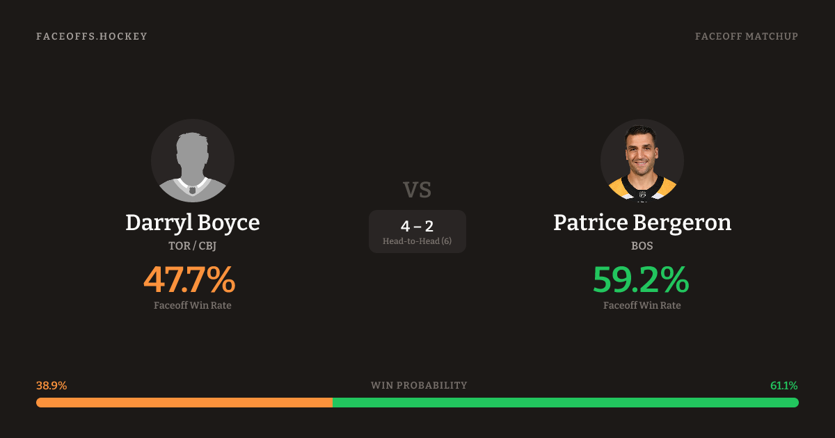 Darryl Boyce vs Patrice Bergeron — Faceoff Head-to-Head
