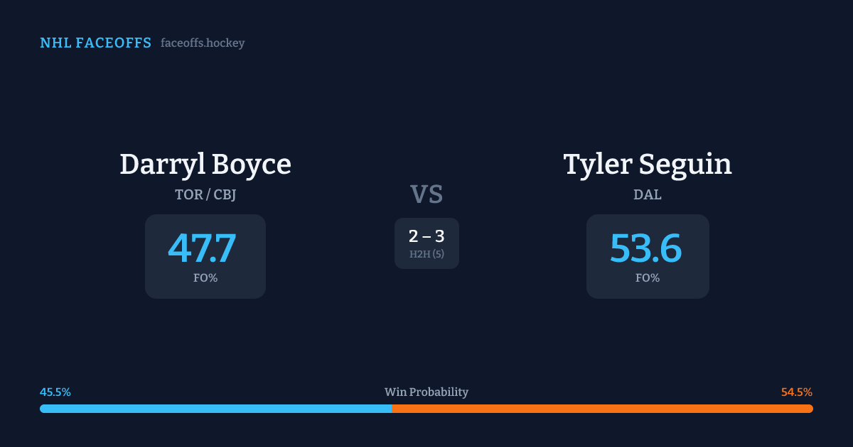 Darryl Boyce vs Tyler Seguin — Faceoff Head-to-Head