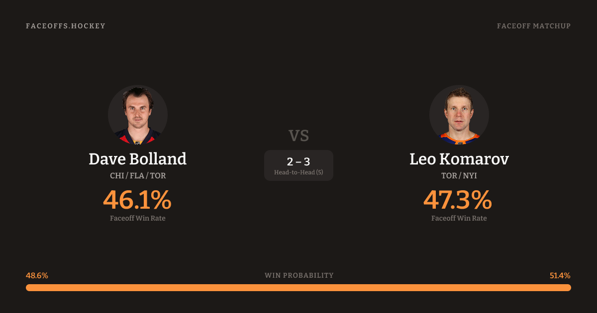 Dave Bolland vs Leo Komarov — Faceoff Head-to-Head