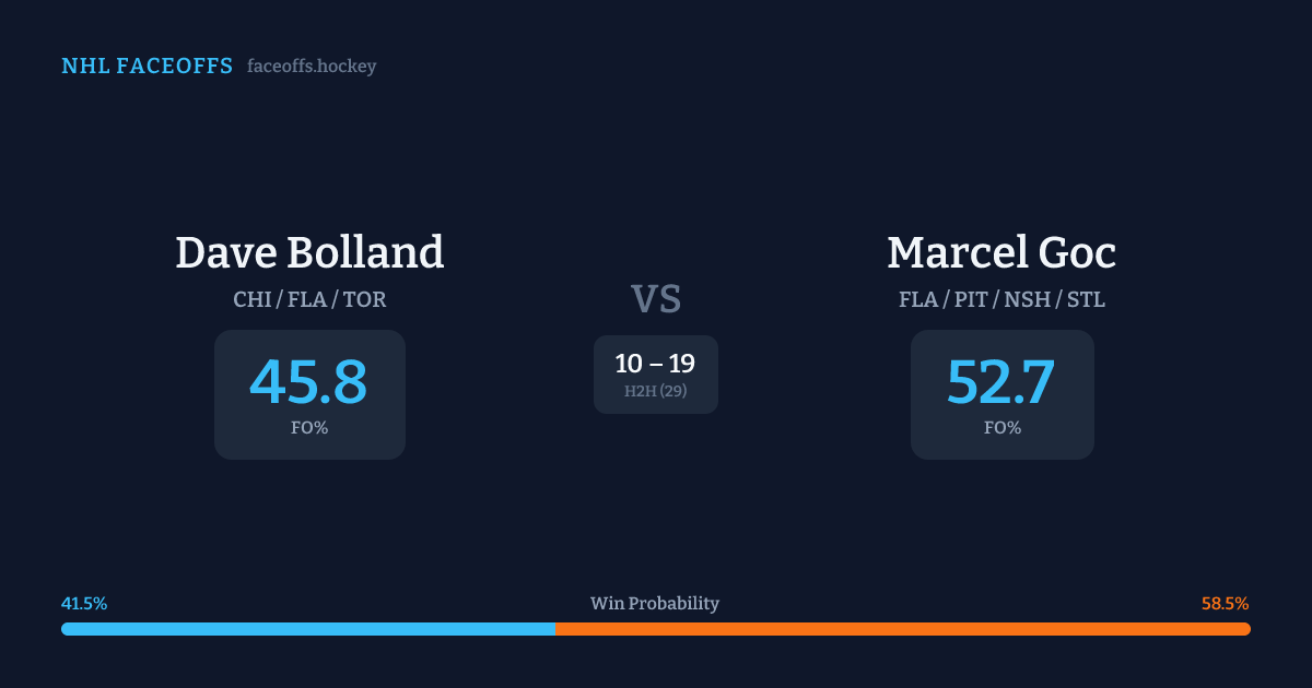Dave Bolland vs Marcel Goc — Faceoff Head-to-Head