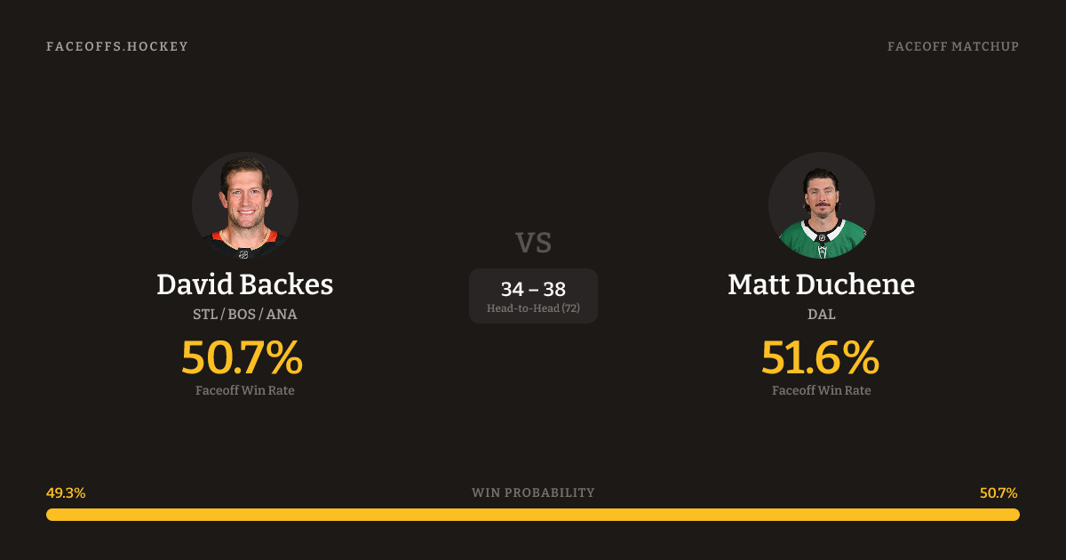 David Backes vs Matt Duchene — Faceoff Head-to-Head