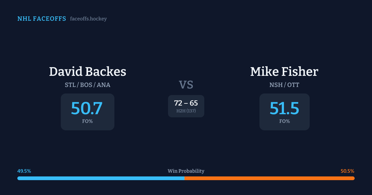 David Backes vs Mike Fisher — Faceoff Head-to-Head