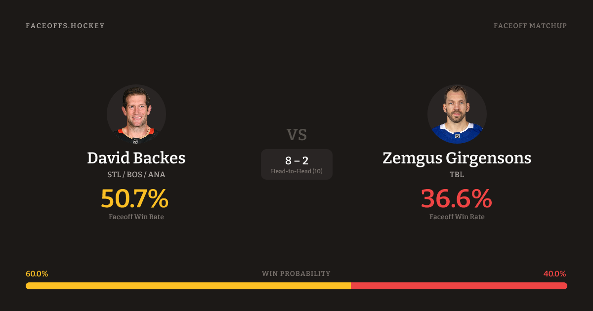 David Backes vs Zemgus Girgensons — Faceoff Head-to-Head