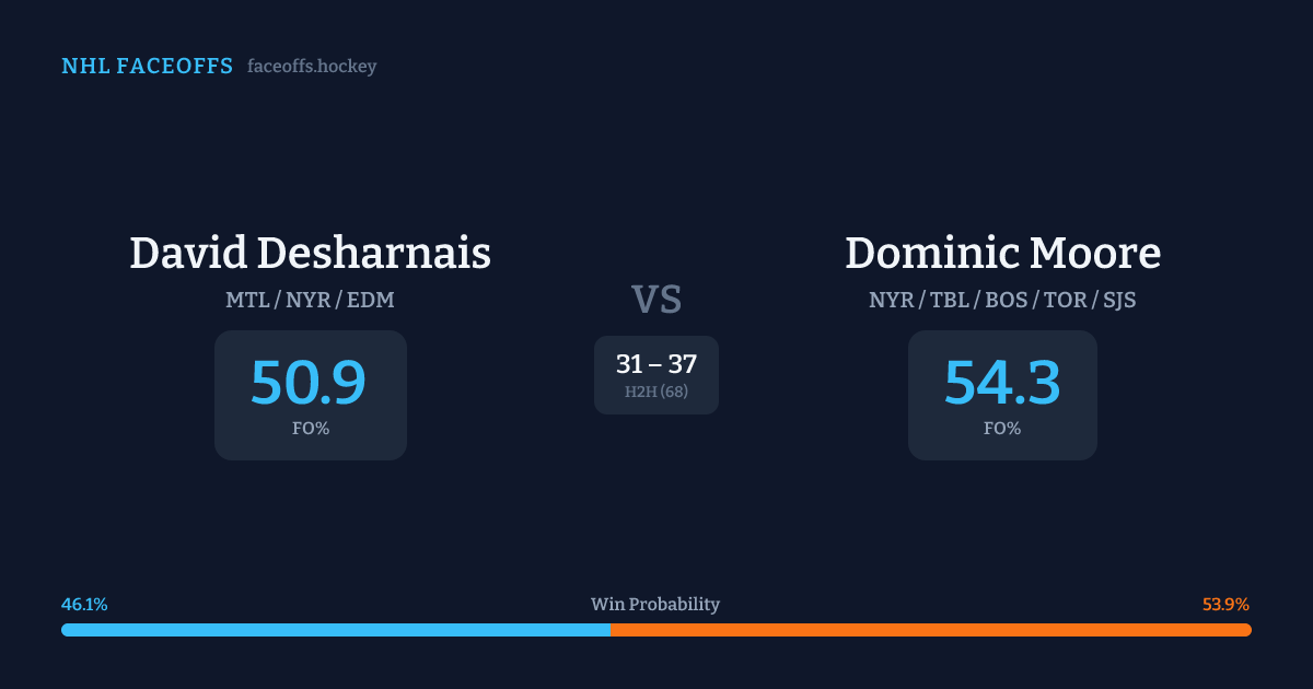 David Desharnais vs Dominic Moore — Faceoff Head-to-Head