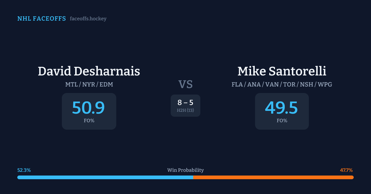 David Desharnais vs Mike Santorelli — Faceoff Head-to-Head
