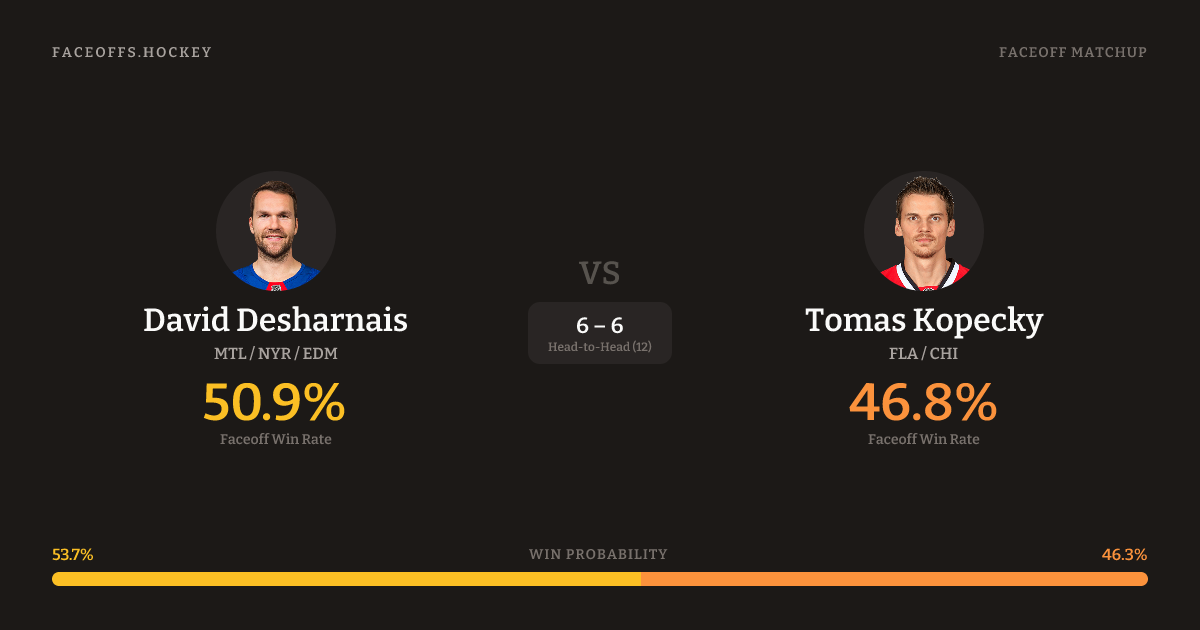 David Desharnais vs Tomas Kopecky — Faceoff Head-to-Head