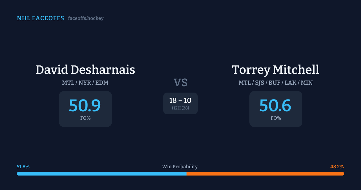 David Desharnais vs Torrey Mitchell — Faceoff Head-to-Head