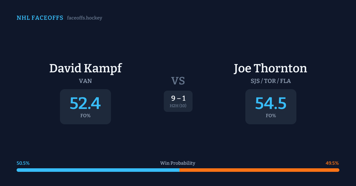 David Kampf vs Joe Thornton — Faceoff Head-to-Head