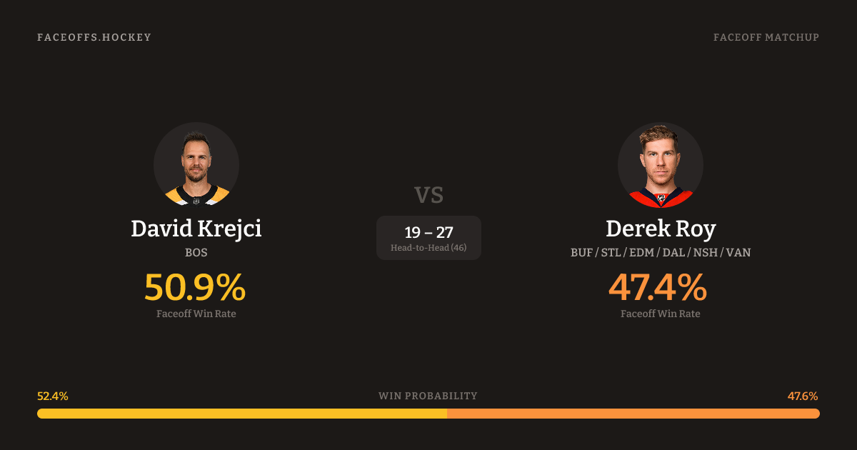 David Krejci vs Derek Roy — Faceoff Head-to-Head