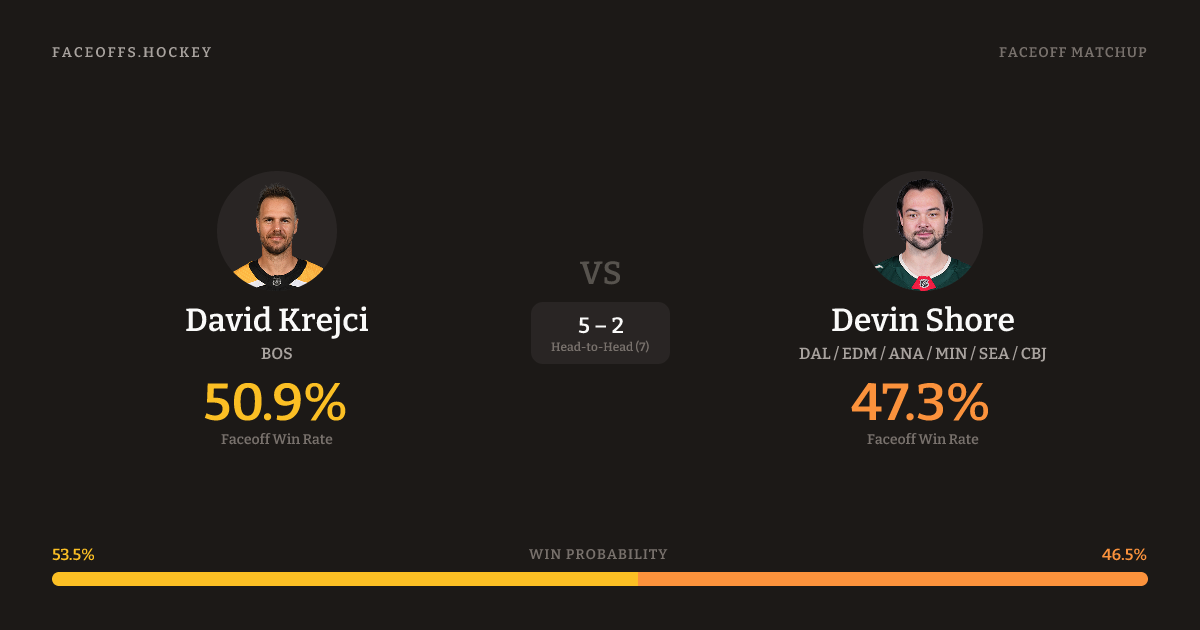 David Krejci vs Devin Shore — Faceoff Head-to-Head
