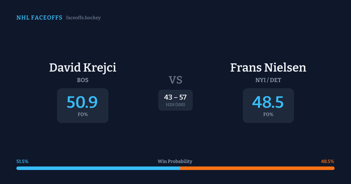David Krejci vs Frans Nielsen — Faceoff Head-to-Head