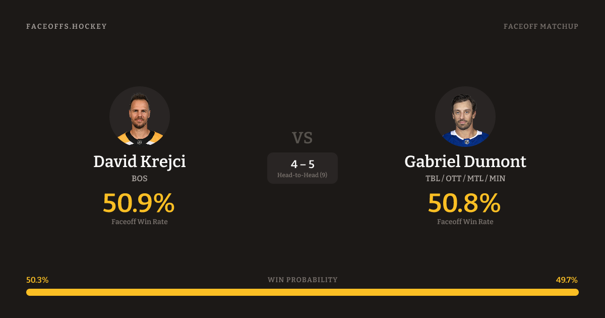 David Krejci vs Gabriel Dumont — Faceoff Head-to-Head