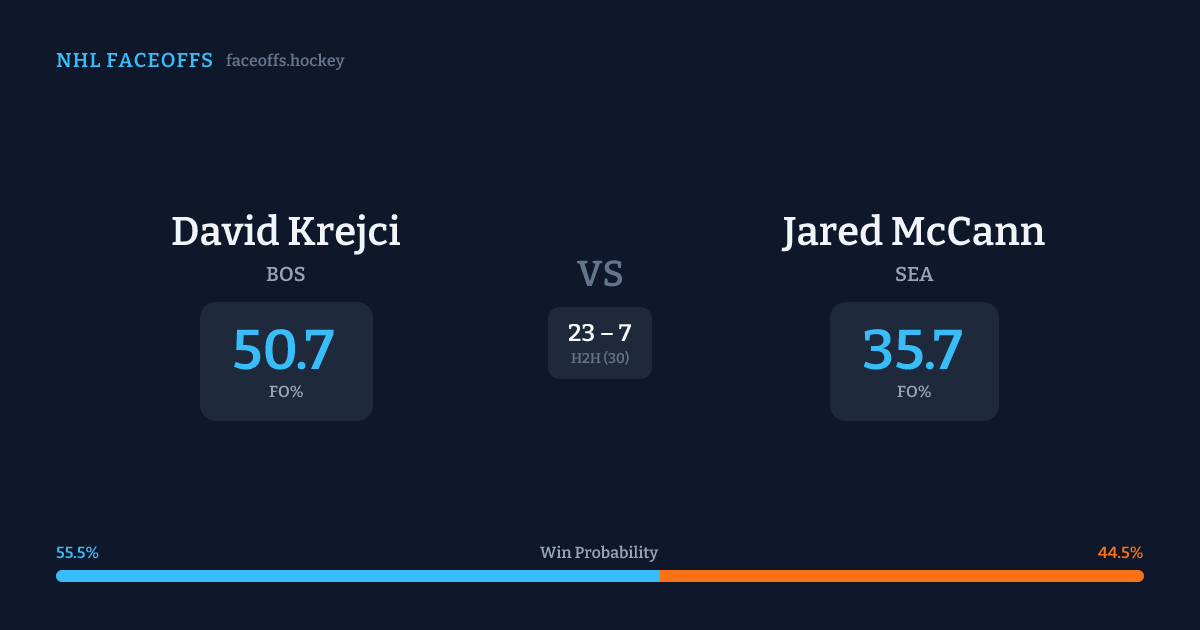 David Krejci vs Jared McCann — Faceoff Head-to-Head