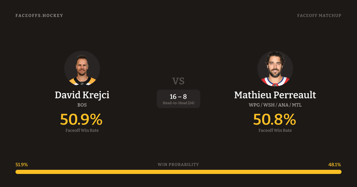 David Krejci vs Mathieu Perreault — Faceoff Head-to-Head