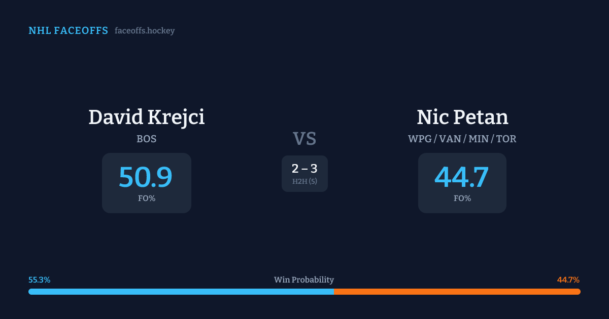 David Krejci vs Nic Petan — Faceoff Head-to-Head