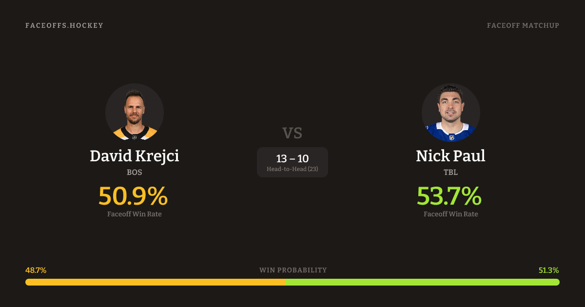 David Krejci vs Nick Paul — Faceoff Head-to-Head