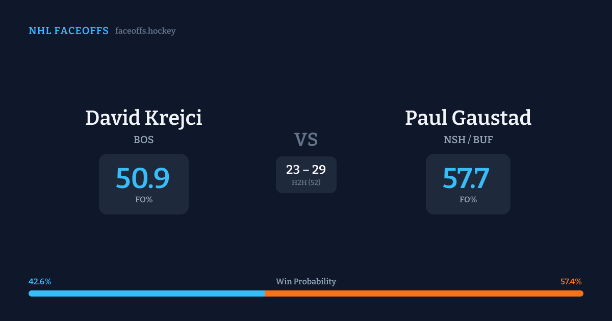 David Krejci vs Paul Gaustad — Faceoff Head-to-Head