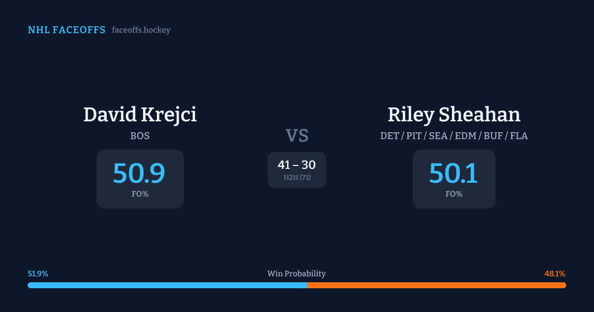 David Krejci vs Riley Sheahan — Faceoff Head-to-Head