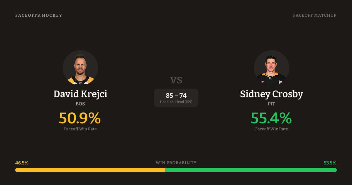 David Krejci vs Sidney Crosby — Faceoff Head-to-Head