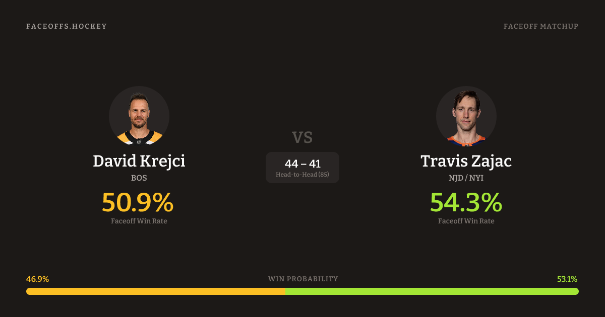 David Krejci vs Travis Zajac — Faceoff Head-to-Head