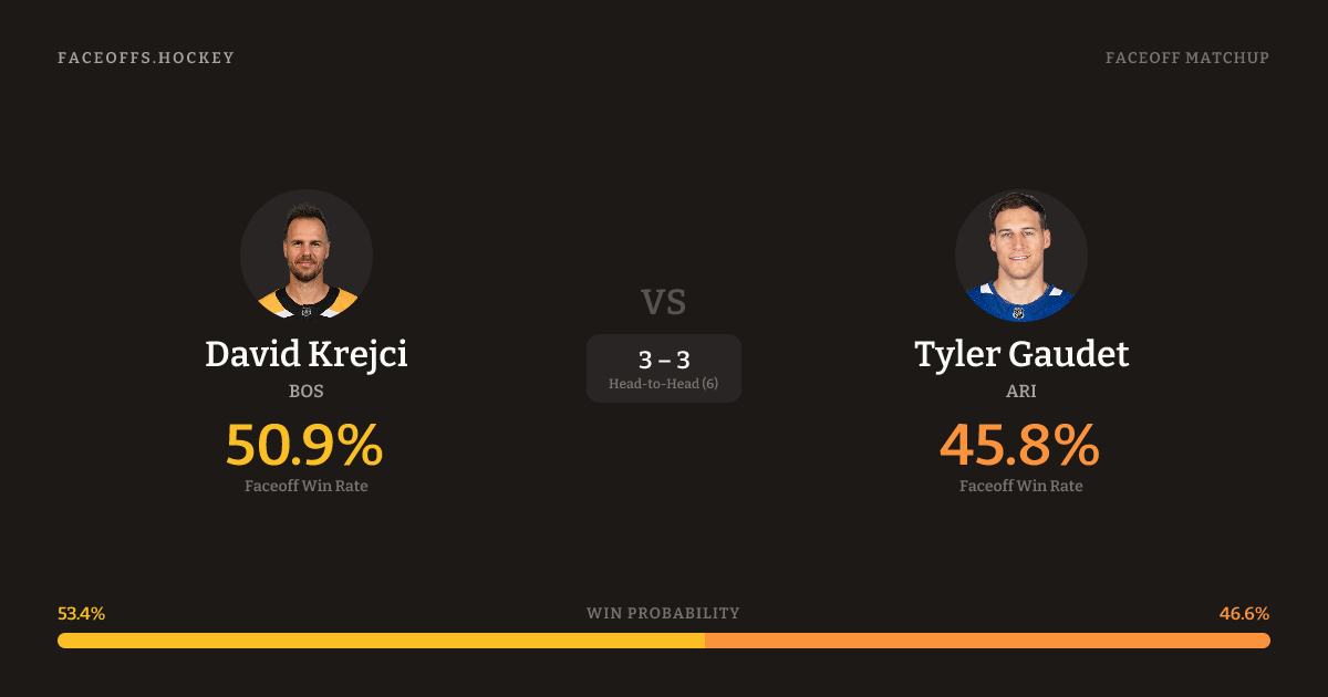 David Krejci vs Tyler Gaudet — Faceoff Head-to-Head