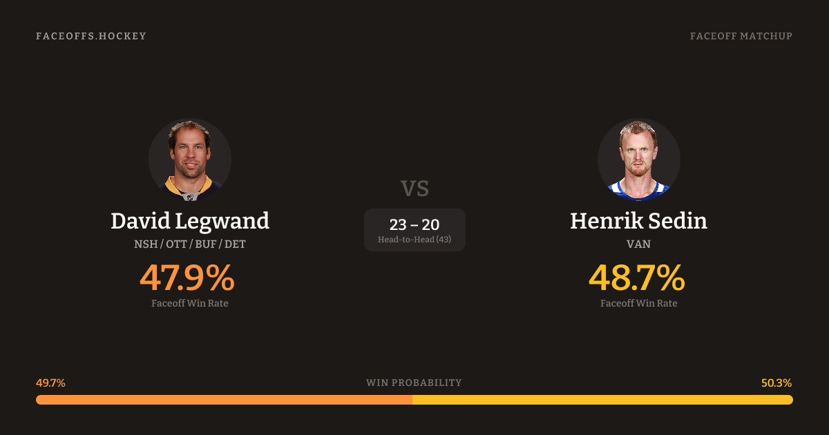 David Legwand vs Henrik Sedin — Faceoff Head-to-Head