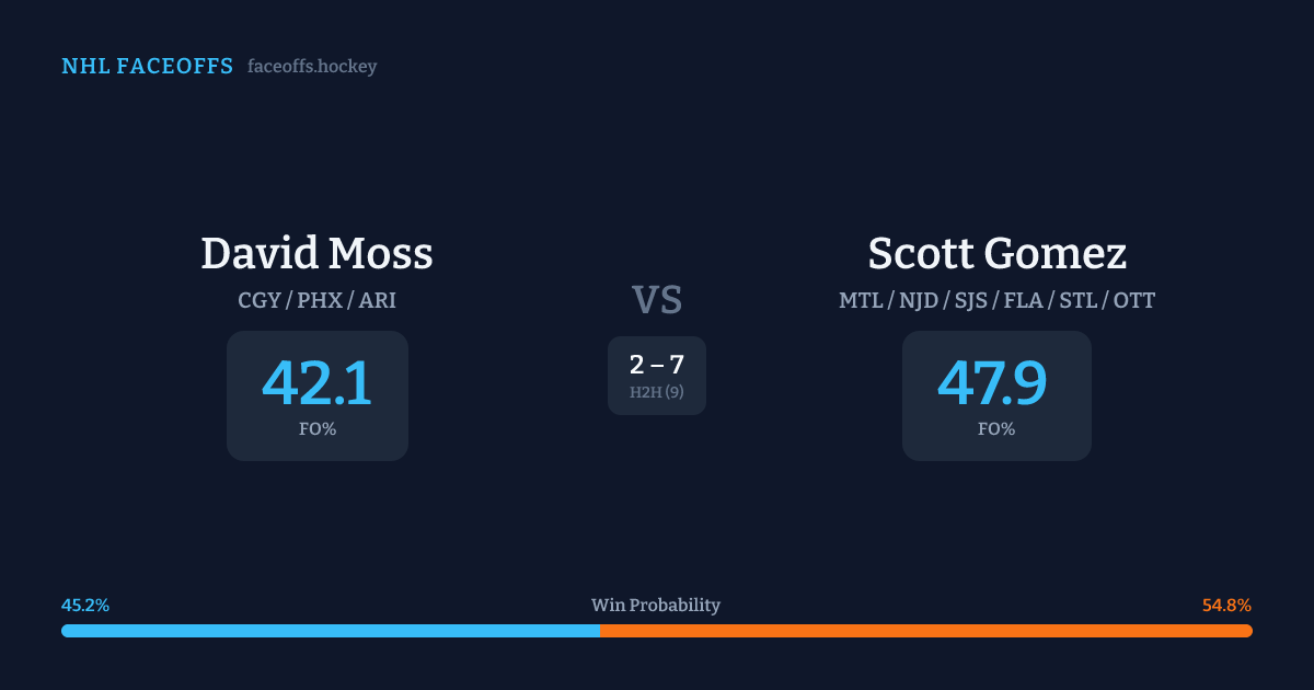 David Moss vs Scott Gomez — Faceoff Head-to-Head