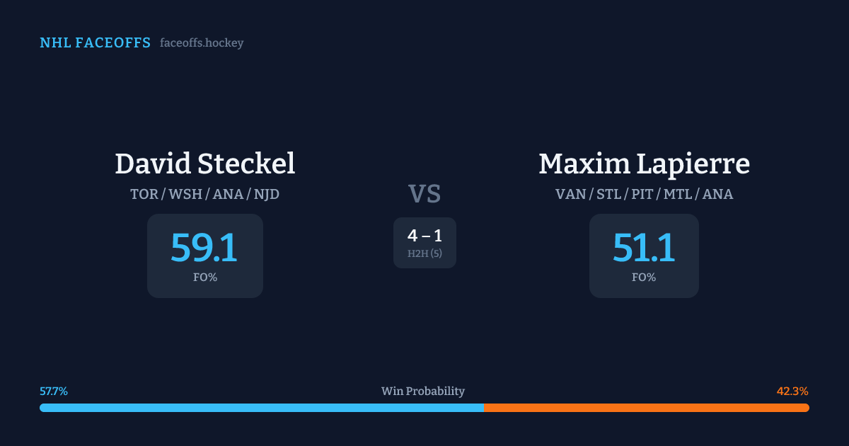 David Steckel vs Maxim Lapierre — Faceoff Head-to-Head
