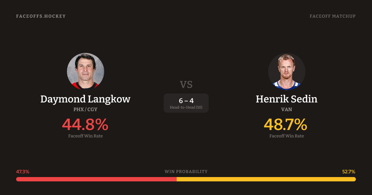 Daymond Langkow vs Henrik Sedin — Faceoff Head-to-Head