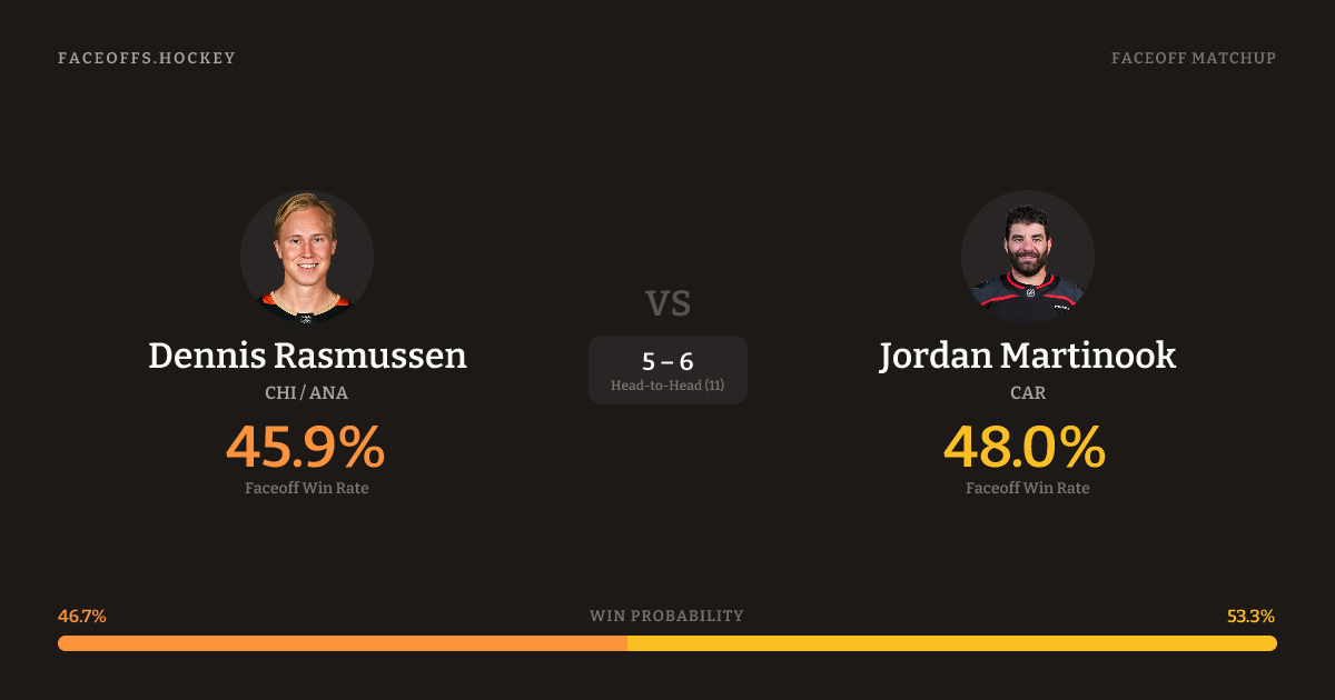 Dennis Rasmussen vs Jordan Martinook — Faceoff Head-to-Head