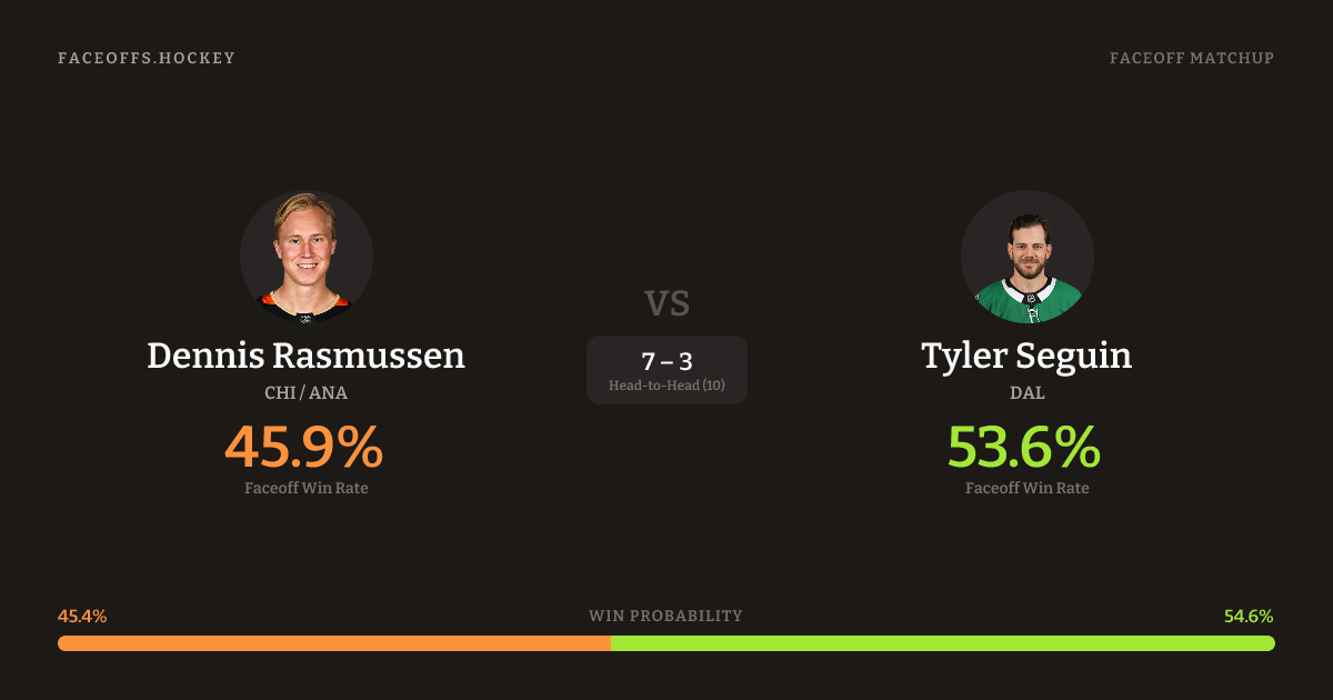 Dennis Rasmussen vs Tyler Seguin — Faceoff Head-to-Head
