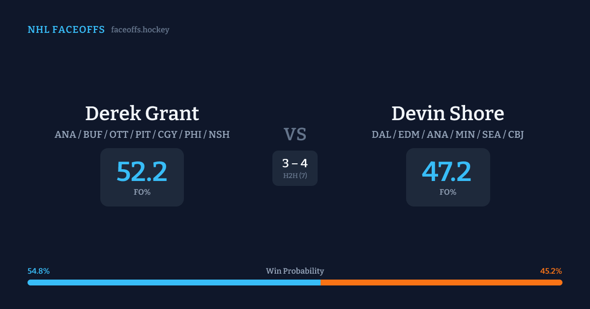 Derek Grant vs Devin Shore — Faceoff Head-to-Head