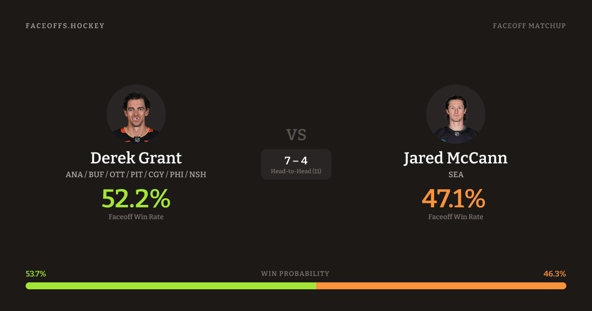 Derek Grant vs Jared McCann — Faceoff Head-to-Head