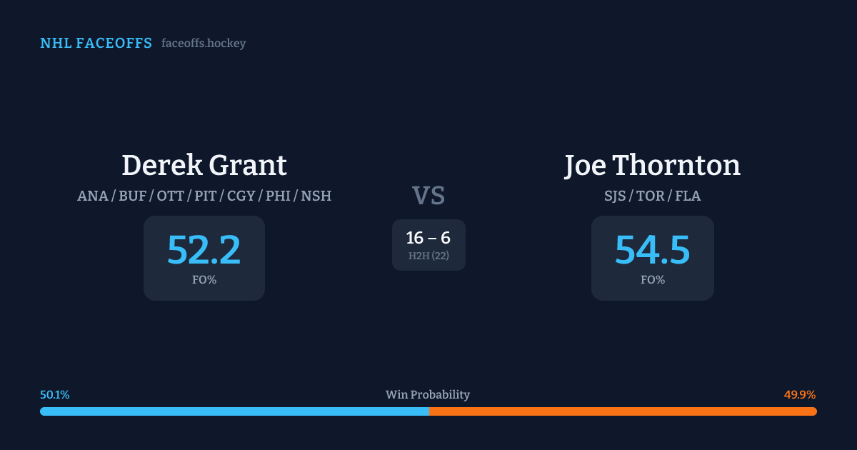 Derek Grant vs Joe Thornton — Faceoff Head-to-Head