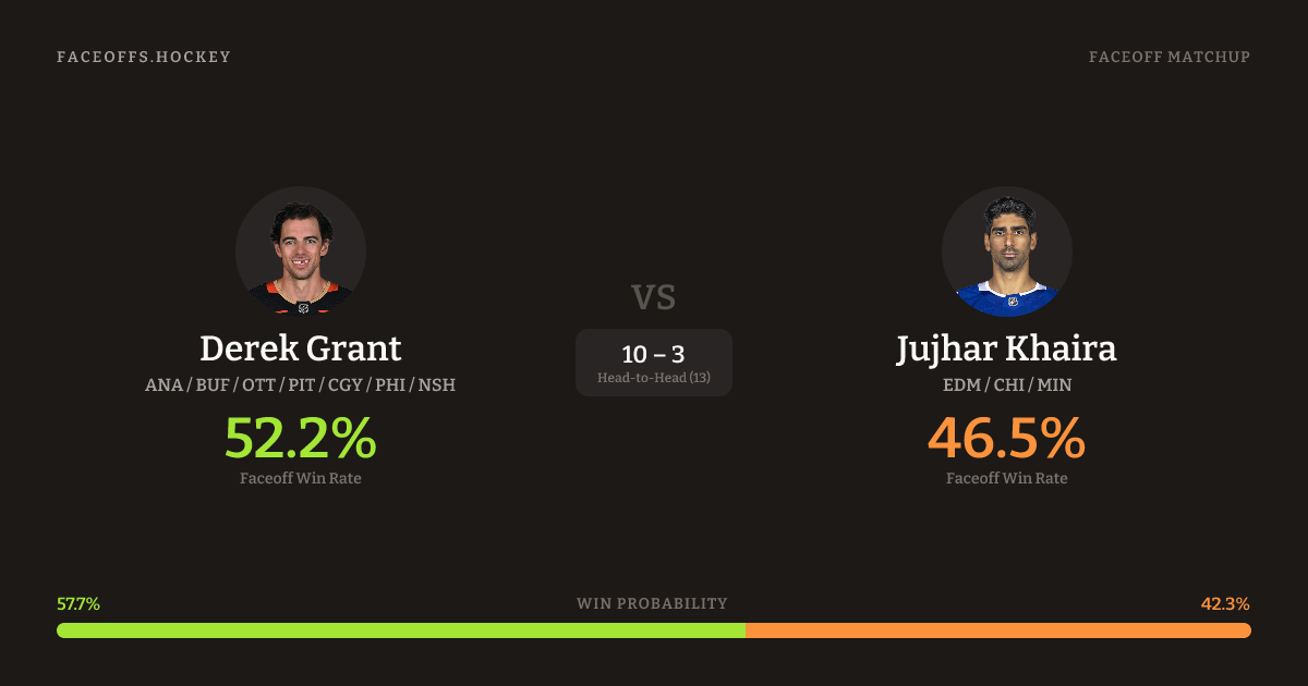 Derek Grant vs Jujhar Khaira — Faceoff Head-to-Head