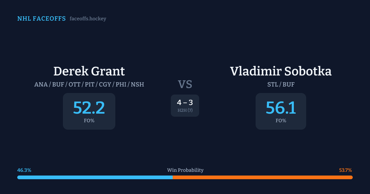 Derek Grant vs Vladimir Sobotka — Faceoff Head-to-Head