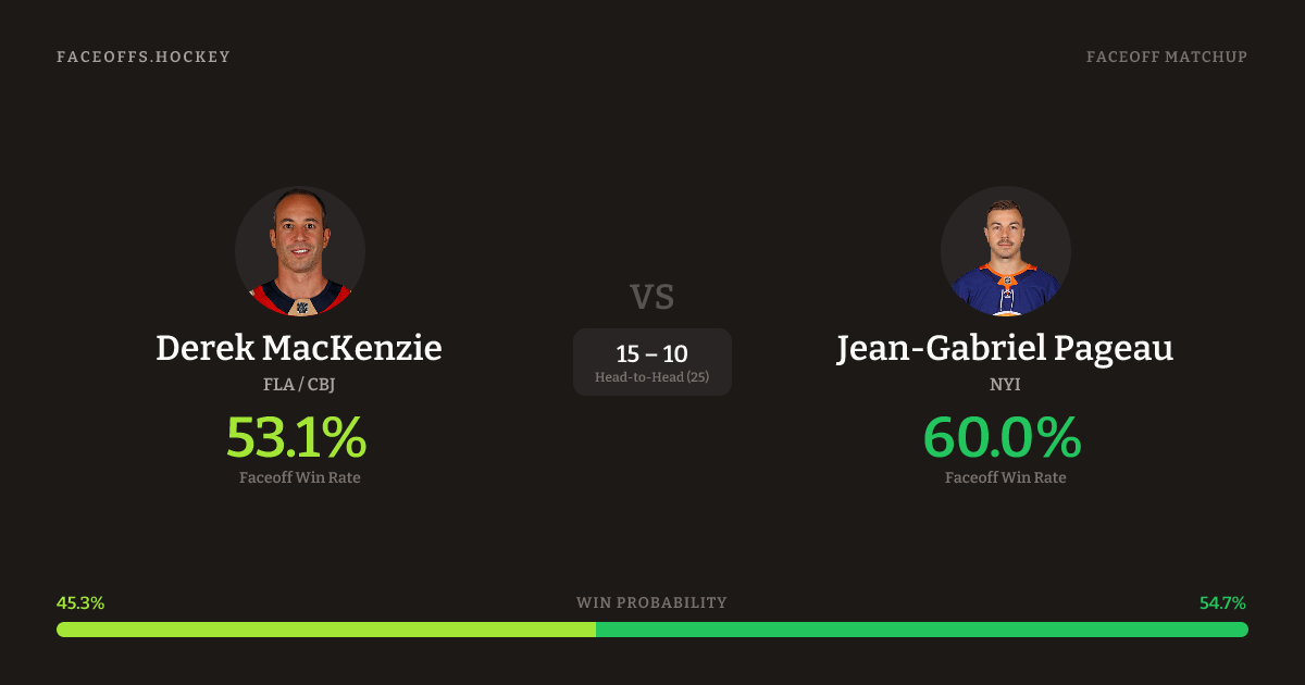 Derek MacKenzie vs Jean-Gabriel Pageau — Faceoff Head-to-Head