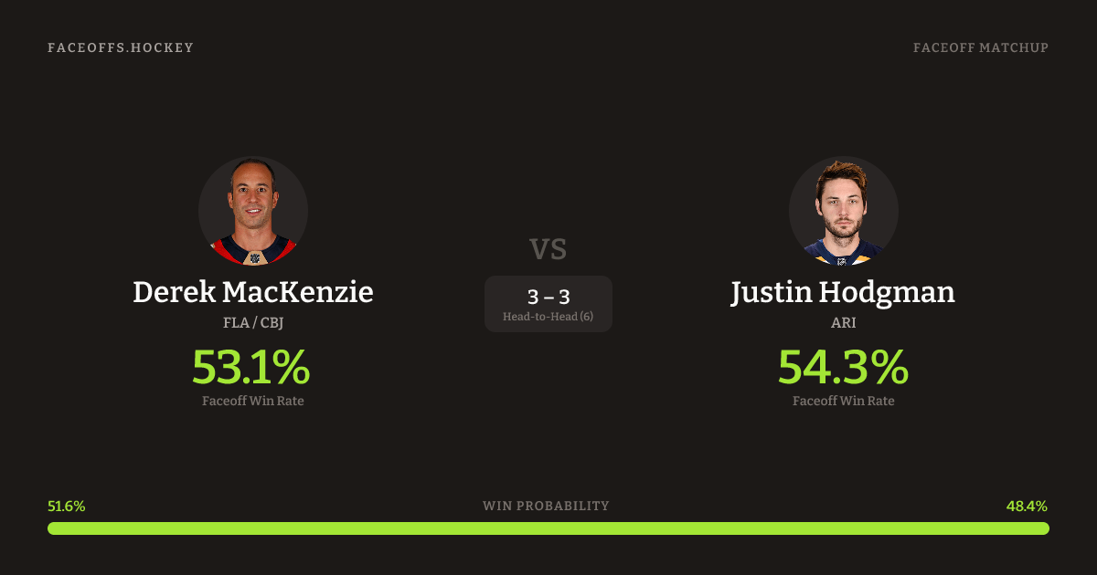 Derek MacKenzie vs Justin Hodgman — Faceoff Head-to-Head