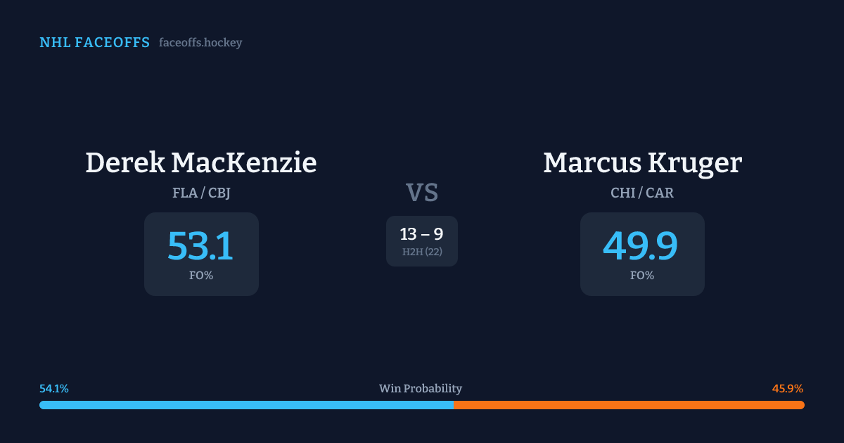 Derek MacKenzie vs Marcus Kruger — Faceoff Head-to-Head