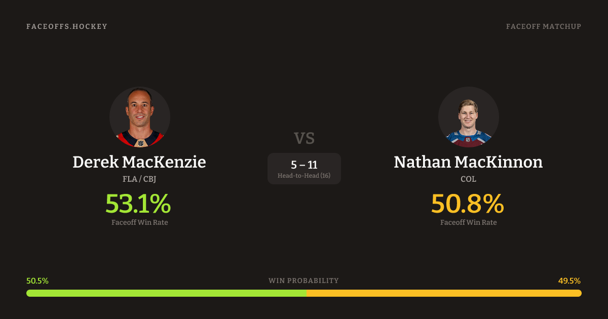 Derek MacKenzie vs Nathan MacKinnon — Faceoff Head-to-Head