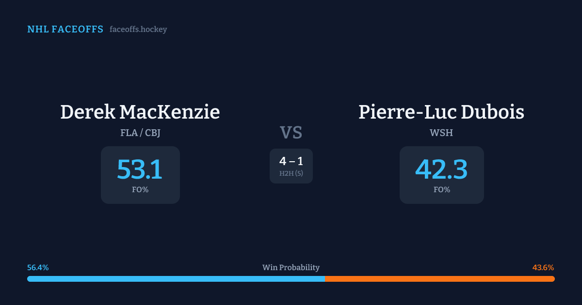 Derek MacKenzie vs Pierre-Luc Dubois — Faceoff Head-to-Head