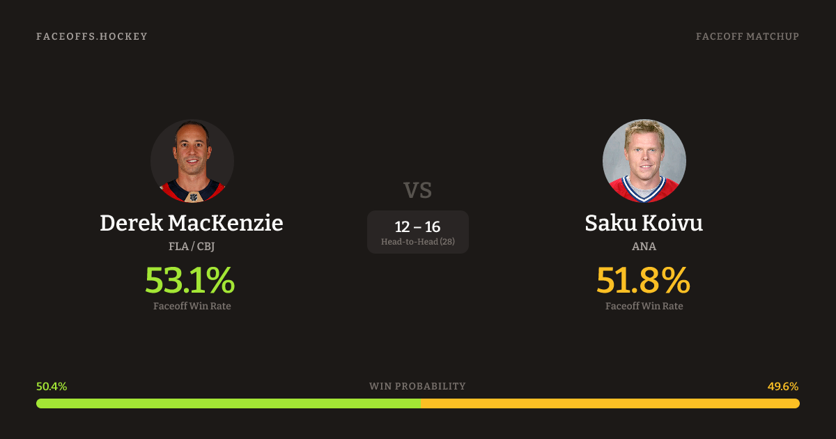 Derek MacKenzie vs Saku Koivu — Faceoff Head-to-Head