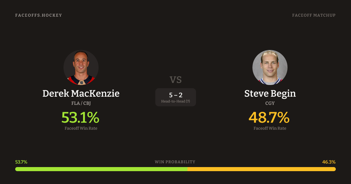 Derek MacKenzie vs Steve Begin — Faceoff Head-to-Head