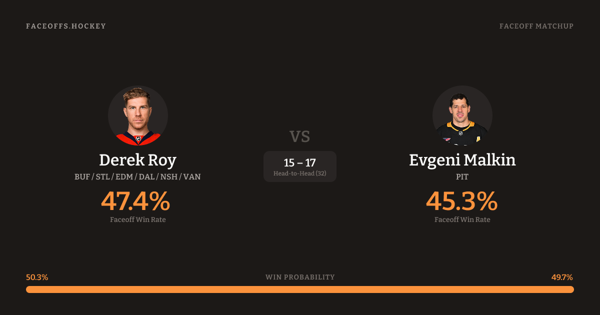 Derek Roy vs Evgeni Malkin — Faceoff Head-to-Head