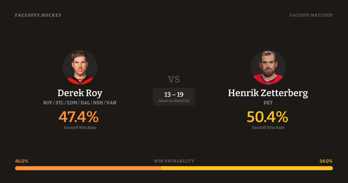 Derek Roy vs Henrik Zetterberg — Faceoff Head-to-Head