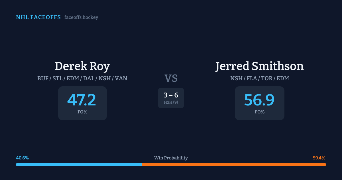 Derek Roy vs Jerred Smithson — Faceoff Head-to-Head