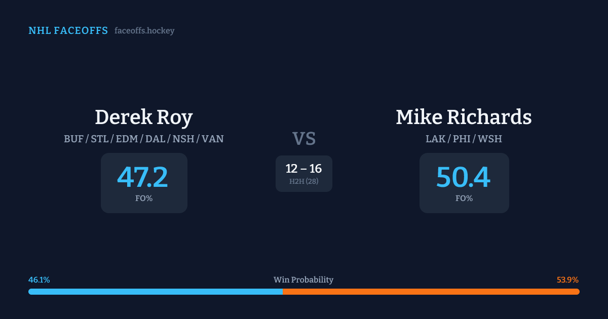 Derek Roy vs Mike Richards — Faceoff Head-to-Head