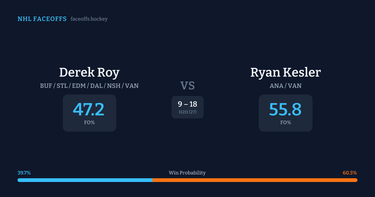 Derek Roy vs Ryan Kesler — Faceoff Head-to-Head